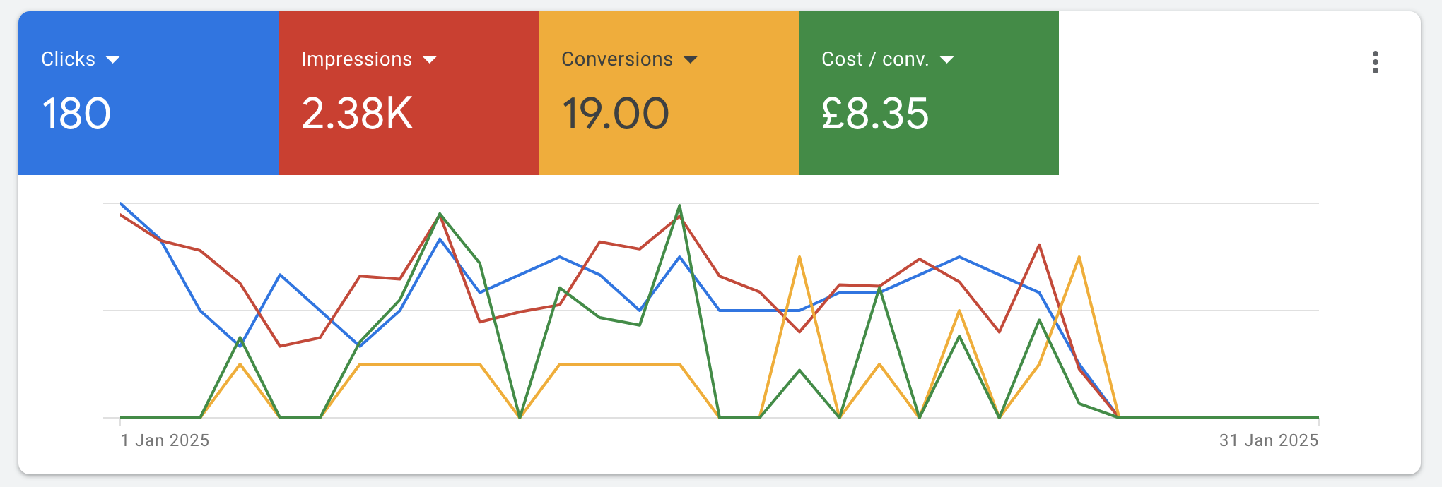 Improved Google Ads efficiency, reducing cost per conversion to £8.35